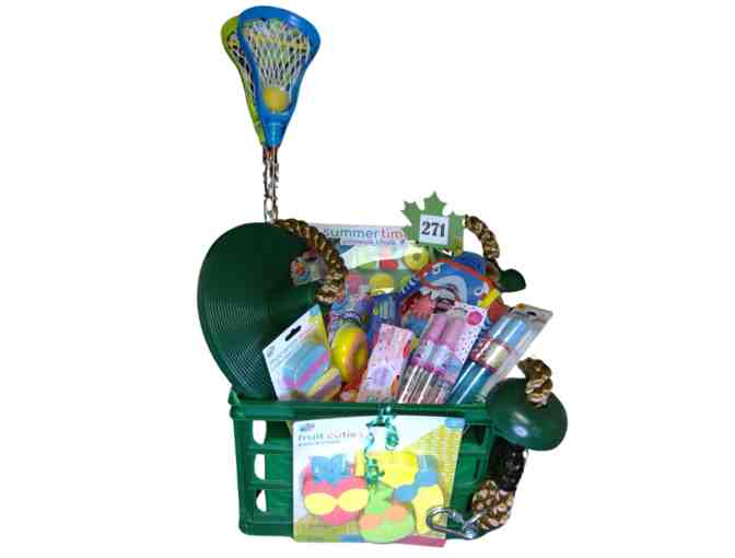 Sidewalk chalk, sidewalk chalk and MORE sidewalk chalk! Bubbles & playdough! A tree swing & and a running-throwing-catching game like this Lacrosse gear!