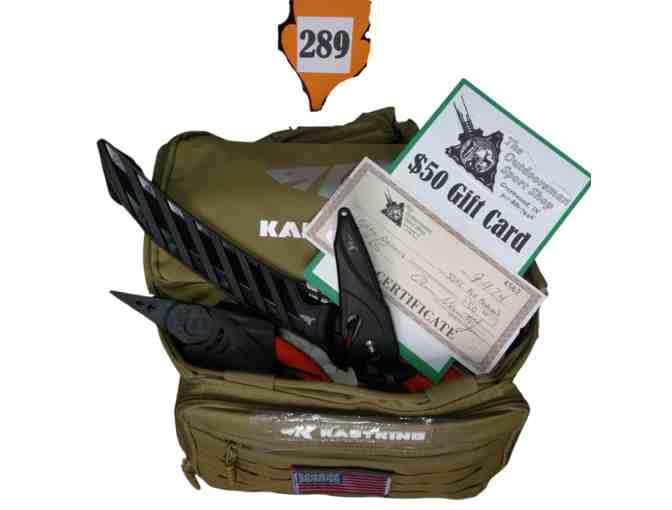 From your favorite fishing brand, KastKing, here's a tackle carry bag plus the fishing tools you need - stainless steel 9" bait shears, 7,5" angled nose pliers and a 9" fillet knife all with nonslip grips and protective sheaths!