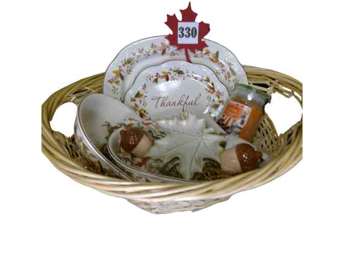 From Pfaltzgraff's 'Autumn Berry' collection, come these wonderful servers: a 14 1/2" oval platter, 10 1/2" small oval 'Thankful" Platter and 2 oval 11" serving bowls.