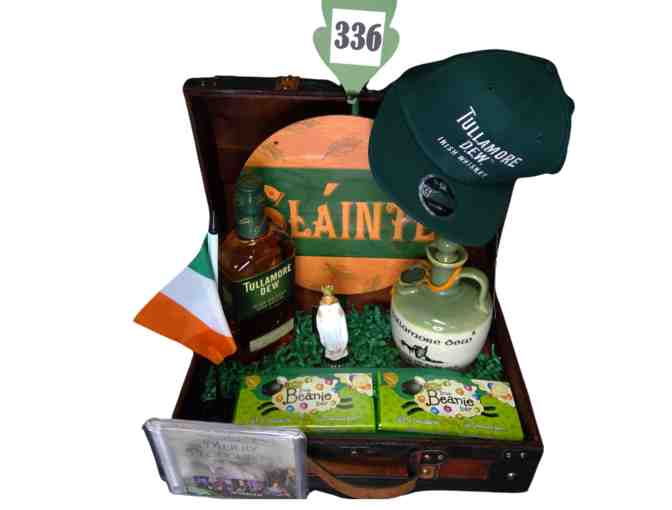 Tullemore D.E.W. from, yes, a small Irish town named Tullamore, has been a legendary whiskey since it was first produced 192 years ago. We honor it here with a fine bottle plus a cap and a vintage (empty) crock/jug perfect for your bar. Slainte!