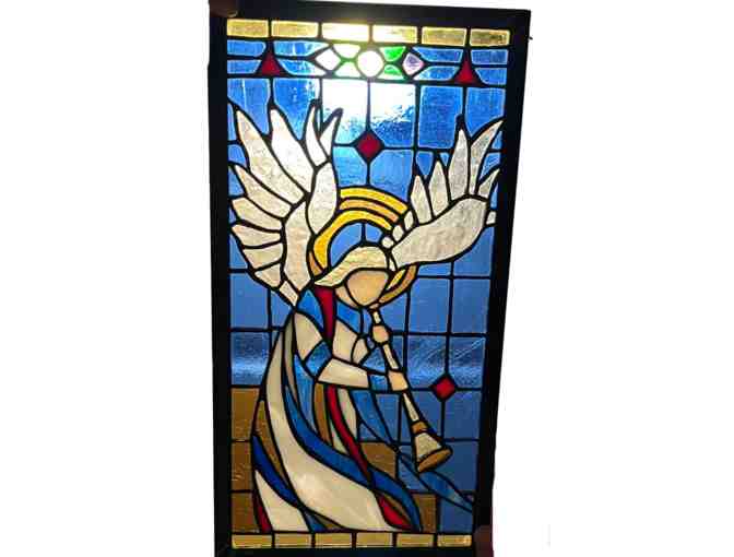 This amazing handmade piece of stained glass mimics our own angel in SSFC at the entrance to our Resurrection Garden. She is 14 inches tall by 7 inches wide, the perfect size to display in your home.