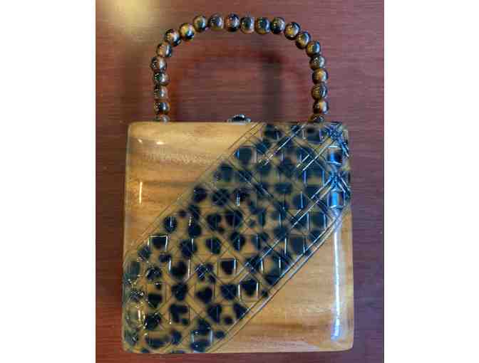 Timmy Woods of Beverly Hills Collection Art to Wear Purse Black Lacquer and Natural Wood