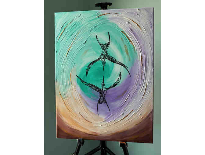 "Love is Gold" is a painting inspired by two birds I observed in my backyard. Love is simple and as beautiful as gold.