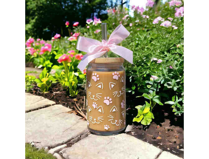 You are bidding on 2 cat mom glass tumblers with glass straws.