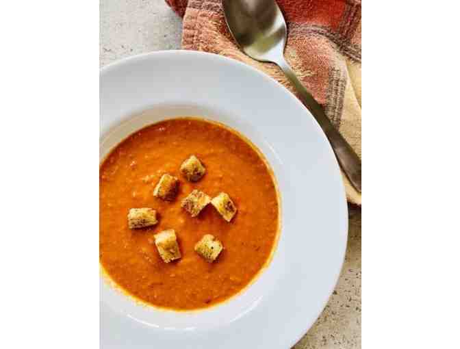 Enjoy Homemade Tomato Soup with Croutons and Apple Crisp for dessert prepared by United Properties' Ann Riemersma.