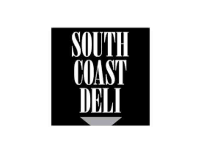 Enjoy a fabulous sandwich or salad at the local and great South Coast Deli. Bid for this South Coast Deli gift card, redeemable at any of South Coast Deli's three locations. Have a delicious breakfast or lunch while donating to a great cause.