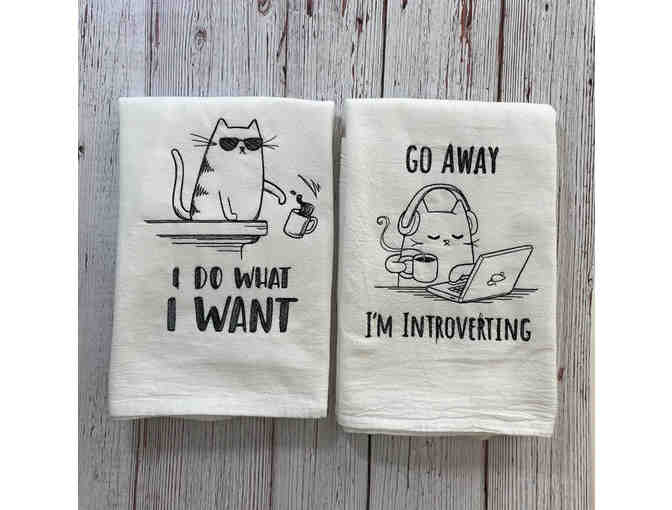 You are bidding on a set of flour sack cat kitchen towels in soft white.