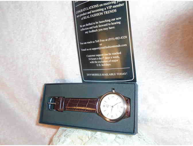 This gold tone watch is not a digital watch...it has gold numbers on its face. It also has a brown leather strap. It is a nice looking watch that would go with any outfit.