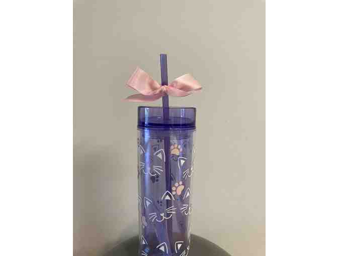 You are bidding on a 16 oz.double wall skinny tumbler with straw. It will keep cold drinks cold and hot drinks hot. Splash proof screw top lid to minimize spills. Non-Toxic, BPA Free Acrylic. 8.5" high, 2/5" diameter.
