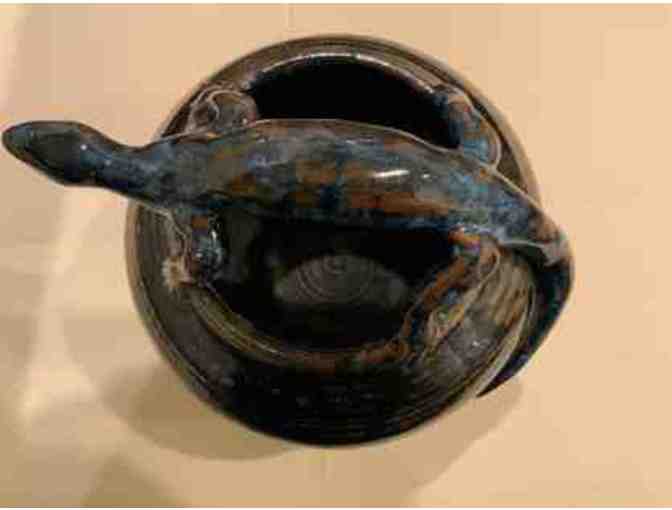 Japanese Style Lizard Handle Pot:  8 inches in diameter at largest point, 7 inches high, lizzart approx 11 inches long