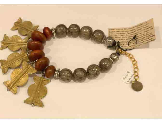 Fringed with Five bronze ornaments with spiral detail from Baoule Tribes of Cameroon using the wax technique currently lost.