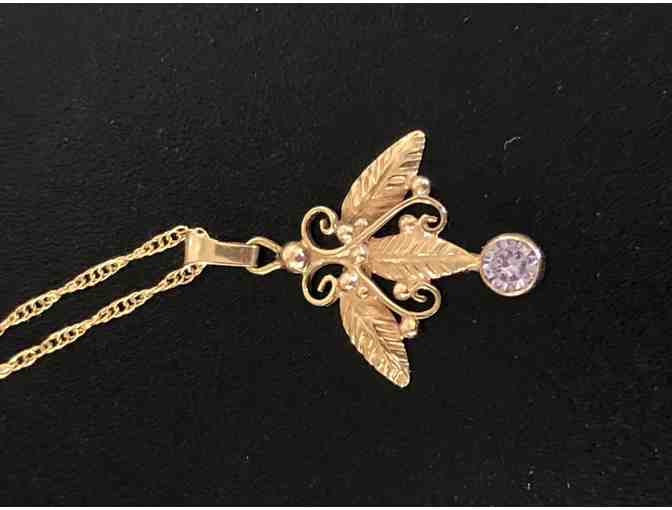 14K Gold Leaf Pendent with Pink Sapphire with 18" gold filled chain