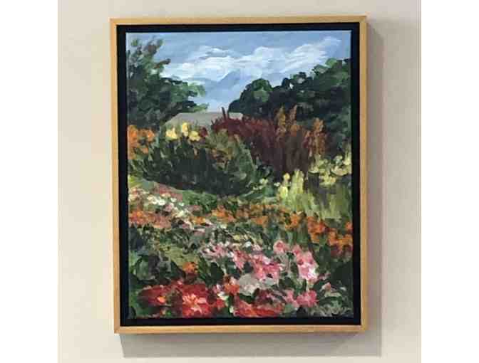 This beauty was created by Allison Saphr, during a plein air art class at Nooney Farm on a warm sunny day overlooking the flower field. Its vibrant colors will brighten up any space in your home.