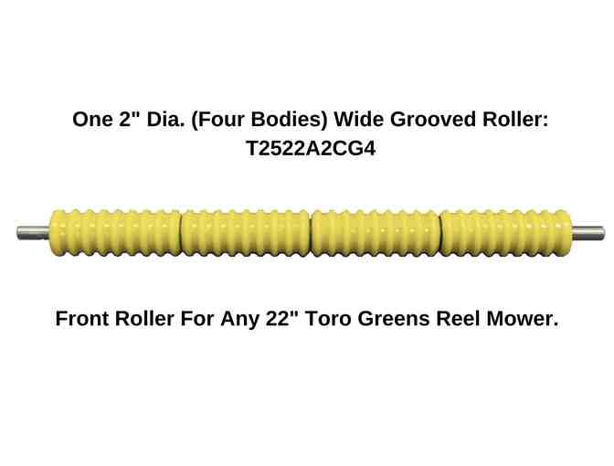 One set of 1 piece of T2522A2CG4 (2" dia. four body front wide grooved Competition Roller assembly) to fit any 22" Toro greens reel mower.