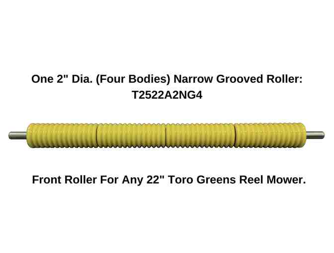 One set of 1 piece of T2522A2NG4 (2" dia. four body front narrow grooved Competition Roller assembly) to fit any 22" Toro greens reel mower.