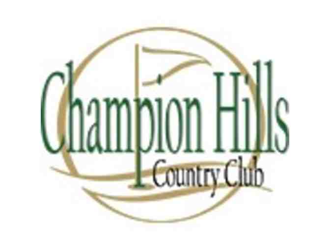 An 18-hole round of golf for four with carts at Champion Hills Country Club in Victor, NY. Foursome is not allowed to be split in two. Golf appropriate attire is required.