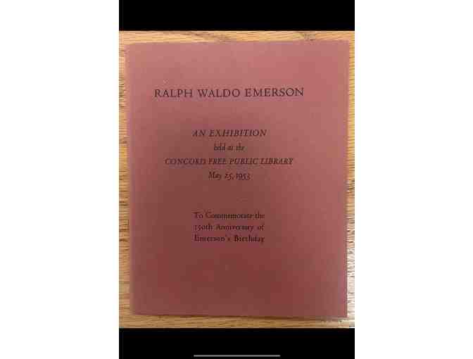 Ralph Waldo Emerson: An Exhibition held at the Concord Free Public Library, May 25, 1953. To Commemorate the 150th Anniversary of Emerson's Birthday. A 20-page exhibition catalog that provides details of about 60 items on display. Includes the text of his "Concord Hymn" as a frontispiece. A unique item for the Emerson afficionado.