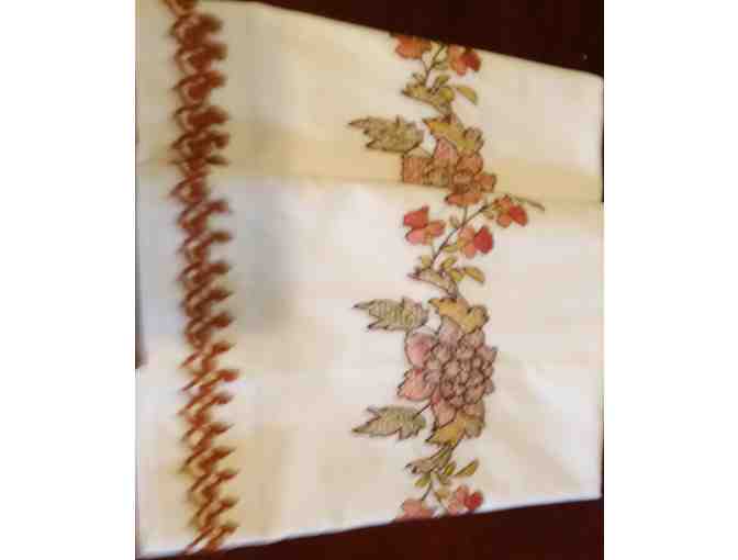 2 Pillow Cases 100% Cotton Hand Embroidery with a Lace Edge (Flower Swag)