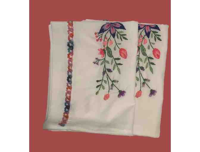 2 Pillow Cases 100% Cotton Hand Embroidery with a Lace Edge (Butterflies and Flowers)