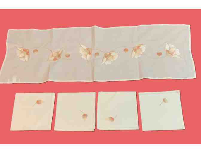 Embroidered Tulip Table Runner with 4 Napkins