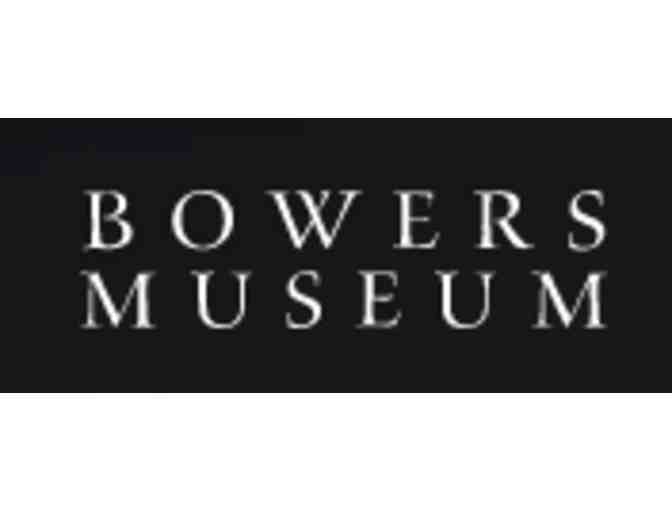 You are bidding on 2 day passes to the Bowers Museum to view all Permanent Collections and non-specially ticketed exhibits; Tuesday thru Sunday between 10 am and 4 pm.