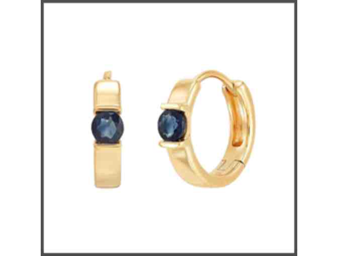 Carden Avenue presents a pair of Solitare Sapphire 10mm Huggie earrings.