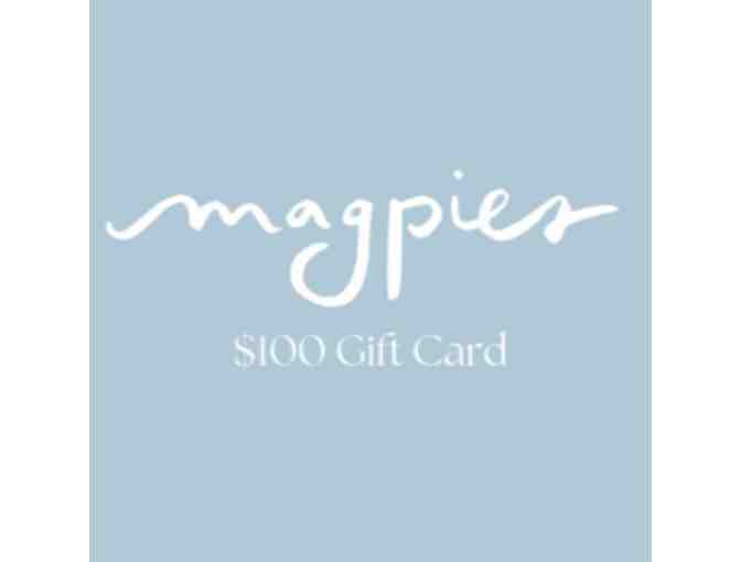 Magpies Nashville presents a $100 digital gift card. Magpies is a locally-owned boutique bringing you a beautifully curated collection of children's clothing, accessories and gifts.
