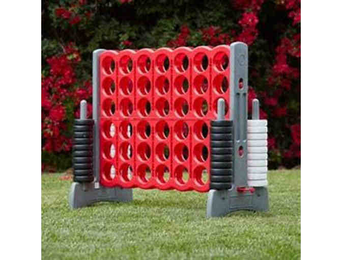 This durable indoor/outdoor game is a life-sized version of the classic ring-dropping game, simply be the first to connect four pieces in a row in any direction to win.