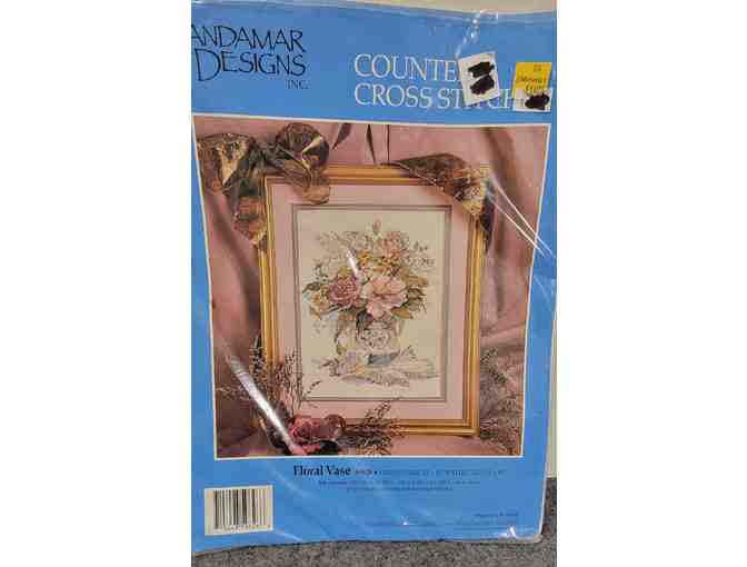 CANDAMAR SOMETHING SPECIAL FLORAL VASE COUNTED CROSS STITCH KIT #50626 Finished Size 11"X14" Matted Size 15" X 18"