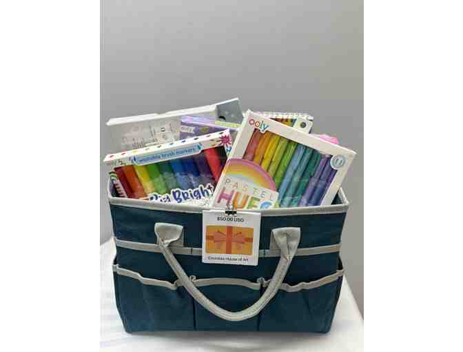 Discover your creative potential with this Art Basket! This thoughtfully curated collection includes everything you need to kickstart your artistic journey, whether you're a beginner or an experienced artist. Inside, you'll find a variety of materials including Melissa & Doug sketchpads, 72 Kalour colored pencils, 48 Artecho Oil Pastels, 3 different sets of Ooly Markers, Ooly Gel Crayons, How to draw book, watercolor set, and a $50 Giftcard to Encinitas Art House —all packed into one convenient art tote. Perfect for artists of all ages!