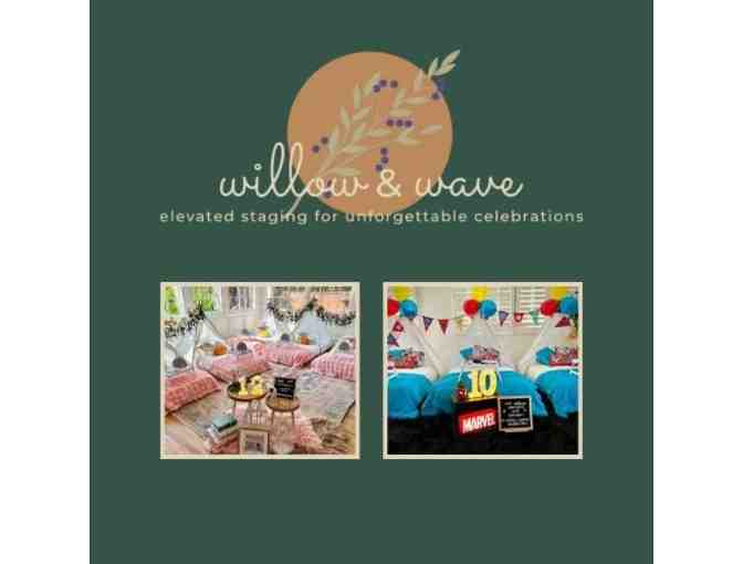 Get ready for an unforgettable experience! Bid on this themed sleepover for 5 kids (option to add more), where every detail is designed to create a night full of magic and wonder. Choose from our 16 signature themes, including favorites like Paradise Luau, Camping, Blue Boho, Marvel, Parisian Dreams, Friday Night Lights, Alice in Wonderland, and many more (check out our website to view all themes)! Want something extra special? You can even upgrade to a custom theme of your choice.