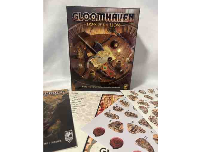 Gloomhaven: Jaws of the Lion Game. Gently used. Sticker set and map included. Cooperative fantasy campaign adventure.
