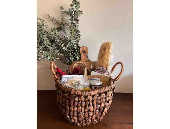 Handpicked from the Poway Farmers Market, this basket is packed with artisanal olive oils, pasta, small-batch marinara, locally sourced honeys, peanut butters, jam, tea, and more. Complete with a charcuterie board and fragrant dried eucalyptus, it’s a delicious way to enjoy farm-fresh goodness at home!