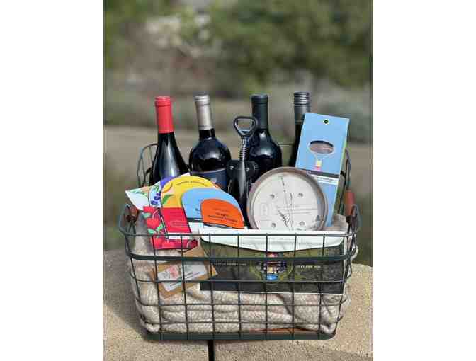 It’s time to unwind and relax. This calming basket comes with a scented candle, comfy oversized scarf, 4 bottles of wine, corkscrew, rose quartz facial/neck roller, and an array of Sephora face, hand, foot, and hair masks.