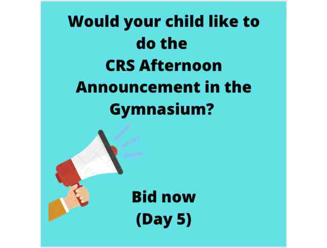 5th GRADERS: Have your child say the CRS Afternoon Announcement in the Gymnasium