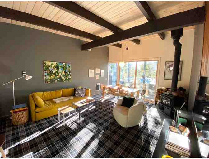 Enjoy three nights in winter or summer in Mammoth. This two-bedroom, 2-bath mid-century A-frame lodge-style unit is on a quiet cul de sac (sleeps up to 6 guests). It is located steps away from Mammoth's free trolley stop, just a short ride to all ski lodges and The Village's shops and restaurants, and directly above, is Lakes Basin Path, a 5.3-mile paved multi-use path that connects the North Village to Horseshoe Lake and passes many popular Mammoth Lakes destinations. It is perfect for discovering the pristine beauty of the Sierras on foot, skis or bike. Dates fill up quickly for peak season. Please reserve in advance.