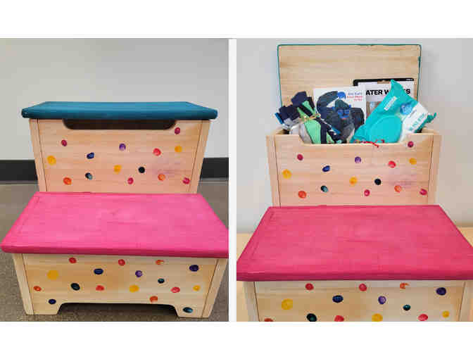 Help me to do it by myself! The quintessential quote comes to life with the help of this super cute stool created with the handiwork of the room 2 toddlers. A child's size stepstool, decorated by the class, will help toddlers reach the sink to wash their hands, their face, and access the toilet to further their toileting and help them gain independence.