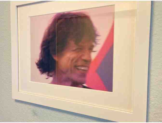 Head-sized, close-up, framed photograph of Mick Jagger. This original photo was taken by SFBC Alum Parent Victor Turks on the occasion of a press conference/performance staged by the Rolling Stones at the Julliard School of Music in Manhattan in May of 2005. 12.5x15.5 inches