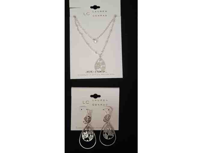 Lauren Conrad Silver Tone Floral Filigree Nickel Free Teardrop Earrings and Necklace - NWT