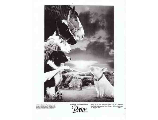 DESCRIPTION: This is a group of 7 production stills each measuring 8x10 in a variety of scenes. All stills have Universal Pictures tags. This lot includes the U.S. presskit set of 5 production stills that also have scene descriptions and are individually numbered (#1-5). Also included is a still of the director (Chris Noonan) and an International still which also has the UIP tag and the title of Babe the Gallant Pig. SEE IMAGES