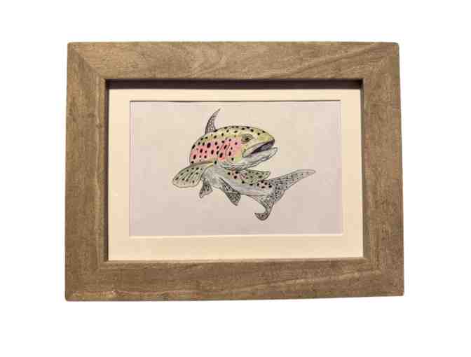 This beautiful matted and framed colored pencil drawing of a trout by Peter Graham of Fish Food Designs would look perfect in any fish enthusiast's home!