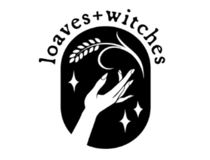 Up for bid is a $25 gift card to Loaves & Witches, a witchy coffee shop offering baked goods and pastries, including vegan and gluten-free options.