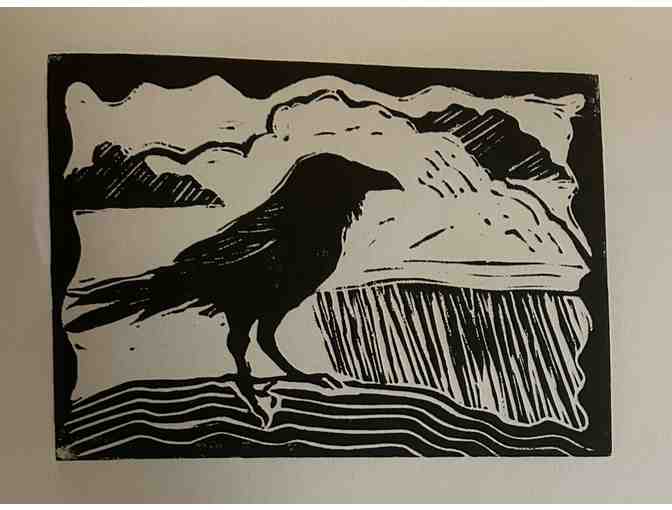 This beautiful linocut print by artist Tess Graham captures a raven amongst a desert landscape. Signed, framed, and ready to hang!