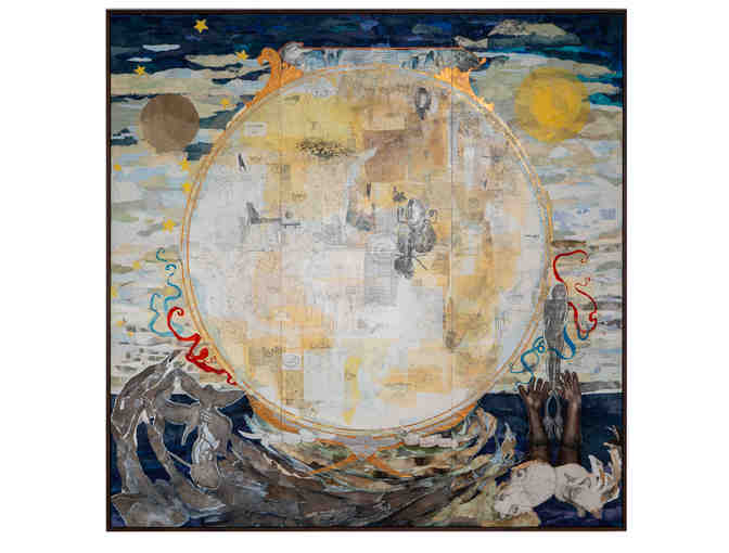 Terra Ephemera, 2022 , 108 X 108 X 5.5 inches , Collaged studio debris, cannibalized drawings, xerox copies, photographs, inkjet prints, notes, working tracings, scraps, tissue paper, leftover Lokta (Mulberry) paper, old prints, nautical charts, gouache, metallic, ink, watercolor, glue, on Arches hote press watercolor paper on wood.