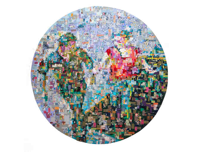 Elopement, 2010 , 48 inches round , Fabric pieces and acrylic paint on canvas