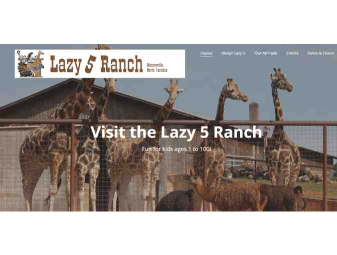 You are bidding on a voucher good for admission of 2 Adults and 2 Children to Lazy 5 Ranch.