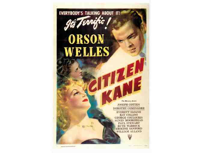 Citizen Kane, the classic 1940 Orson Welles biographical journalism drama starring Orson Welles, Joseph Cotton, Dorothy Comingore, Everett Sloane, Ray Collins, George Coulouris, Agnes Moorehead, Paul Stewart and Ruth Warrick.