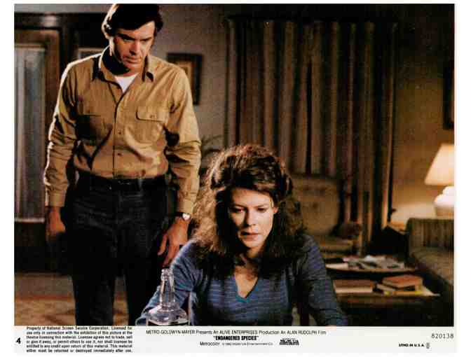 Endangered Species, the 1982 Rudolph sci-fi mystery of cattle killings starring Robert Urich, JoBeth Williams, Paul Dooley, Hoyt Axton, Peter Coyote, Marin Kanter, Gailard Sartain, Dan Hedaya, Jarry Carey Jr. and John Considine.