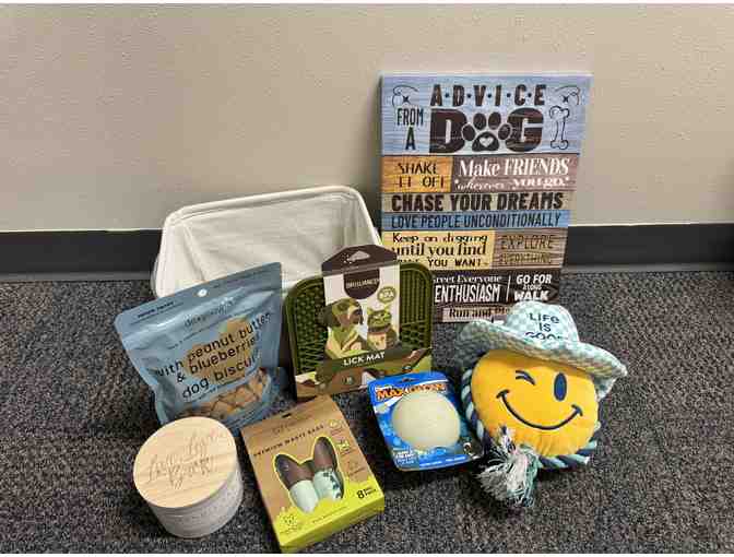 Treat your furry friend with this delightful basket packed with all the essentials for a happy pup. Inside, you'll find: