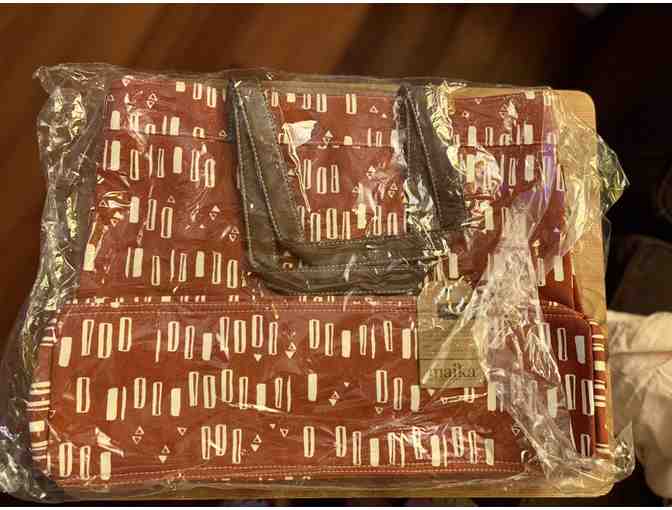 Utility Tote with interior pockets, strap and waterproof lining inside"